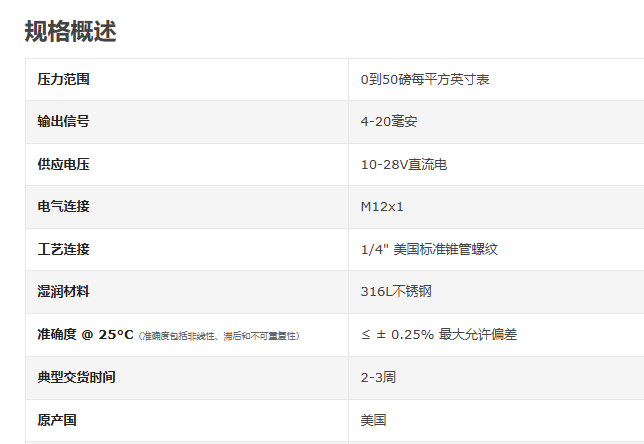 CORE SENSORS 本质安全压力变送器50 PSI系列