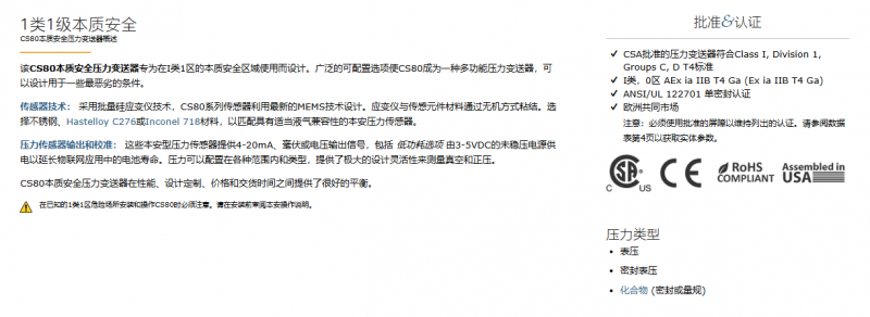 CORE SENSORS 本质安全压力传感器CS80系列